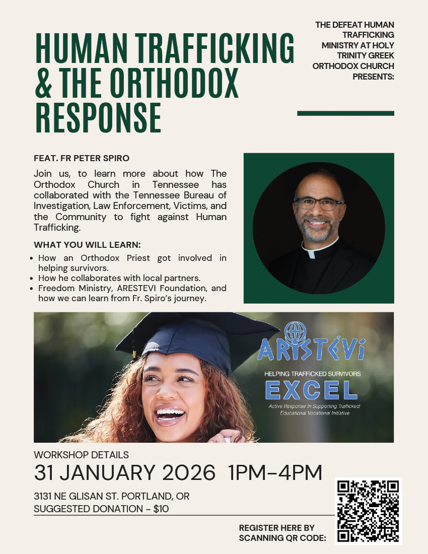 To help prevent human trafficking, sometimes all it takes is for us to pay attention to the people around us. To investigate when something does not look or feel right. To extend a helping hand. Here at Holy Trinity we have a long tradition of welcoming foreigners into our parish and church. A Tradition that continues today. We have been blessed with a beautiful church and facilities. It is our responsibility to welcome foreigners, to help support them and to protect them from being taken advantage of. In the past as well as the present we have opened our doors and hearts. We have provided space to house mission churches, provide refuge and food, trauma informed resources, work, recreational activities, spiritual guidance and community to those in distress. May we continue to emulate our Holy Icon “The Hospitality of Abrahim”.